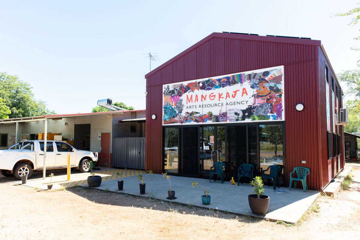 Today the art centre is located in the centre of Fitzroy Crossing and functions as a fine art gallery, specialty store and a studio space for the artists to paint and make cultural artefacts. Mangkaja Arts is funded through a range of Government agencies. Other operational income is derived from commission from sales.